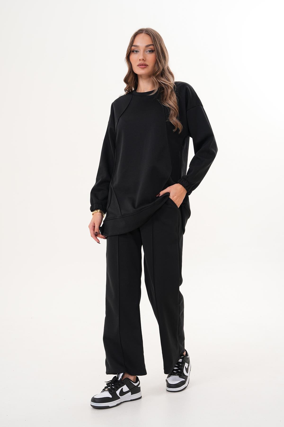 WestBound -Kadın Spor Giyim Bisiklet Yaka Günlük Spor Takımı SİYAH 717